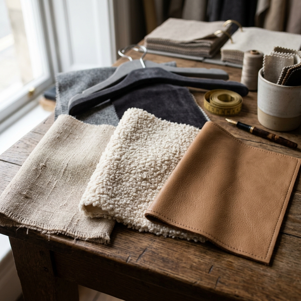 Acesso a um portfólio exclusivo de tecidos nobres (Linhos, Bouclê, Couro Natural) e definição da densidade exata da espuma.